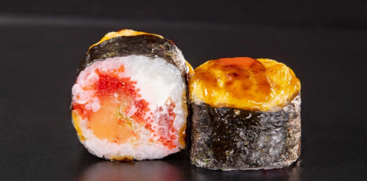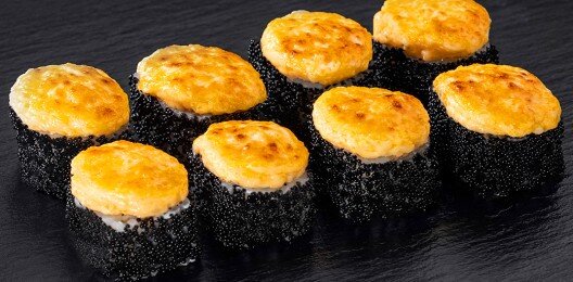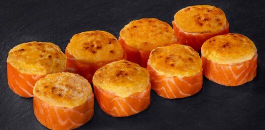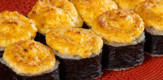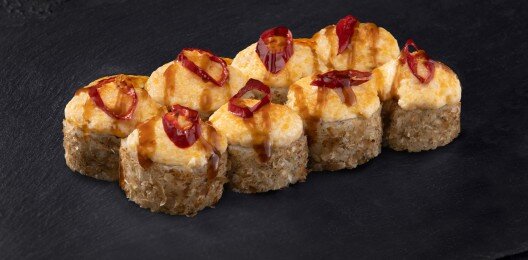 280 гр. Тигровая креветка, икра тобико, сливочный сыр, томат, сырный дип, рис, нори на 100 гр: Б 9,79/Ж 18,95/У 21,02/Ккалл 293,79