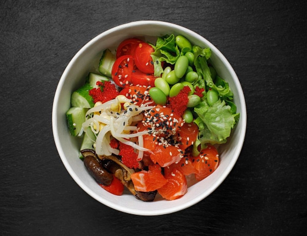 Боул с форелью, рисом и шиитаке