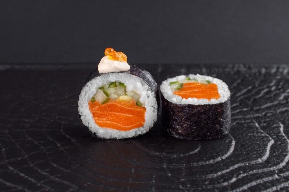 Лосось,огурец,рис,нори,сырно-японский крем,красная икра